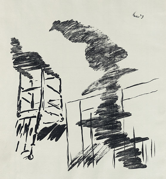 It’s all worth checking out, but here are three pieces in which the conjunction of the painting and the accompanying wurdz was particularly striking. One of the  differences between pictorial art and literature is the apparent “ease” with which a painter, for example, can capture a moment. Consider the apparent difference in the degree of difficulty and technique between, say,  the efforts of Virginia Woolf and Nicholson Baker, and Édouard Manet’s lithograph of The Races at Longchamp (via the Google Art Project).